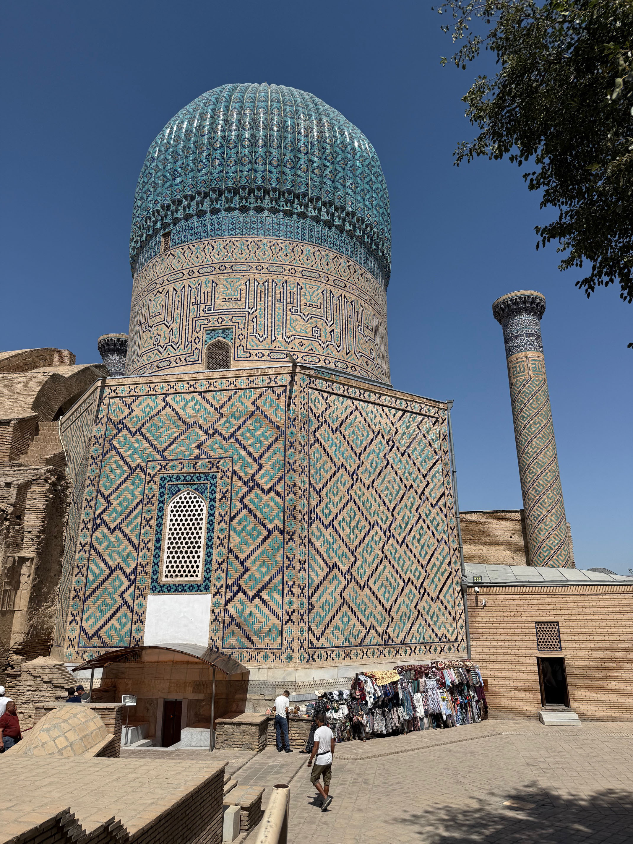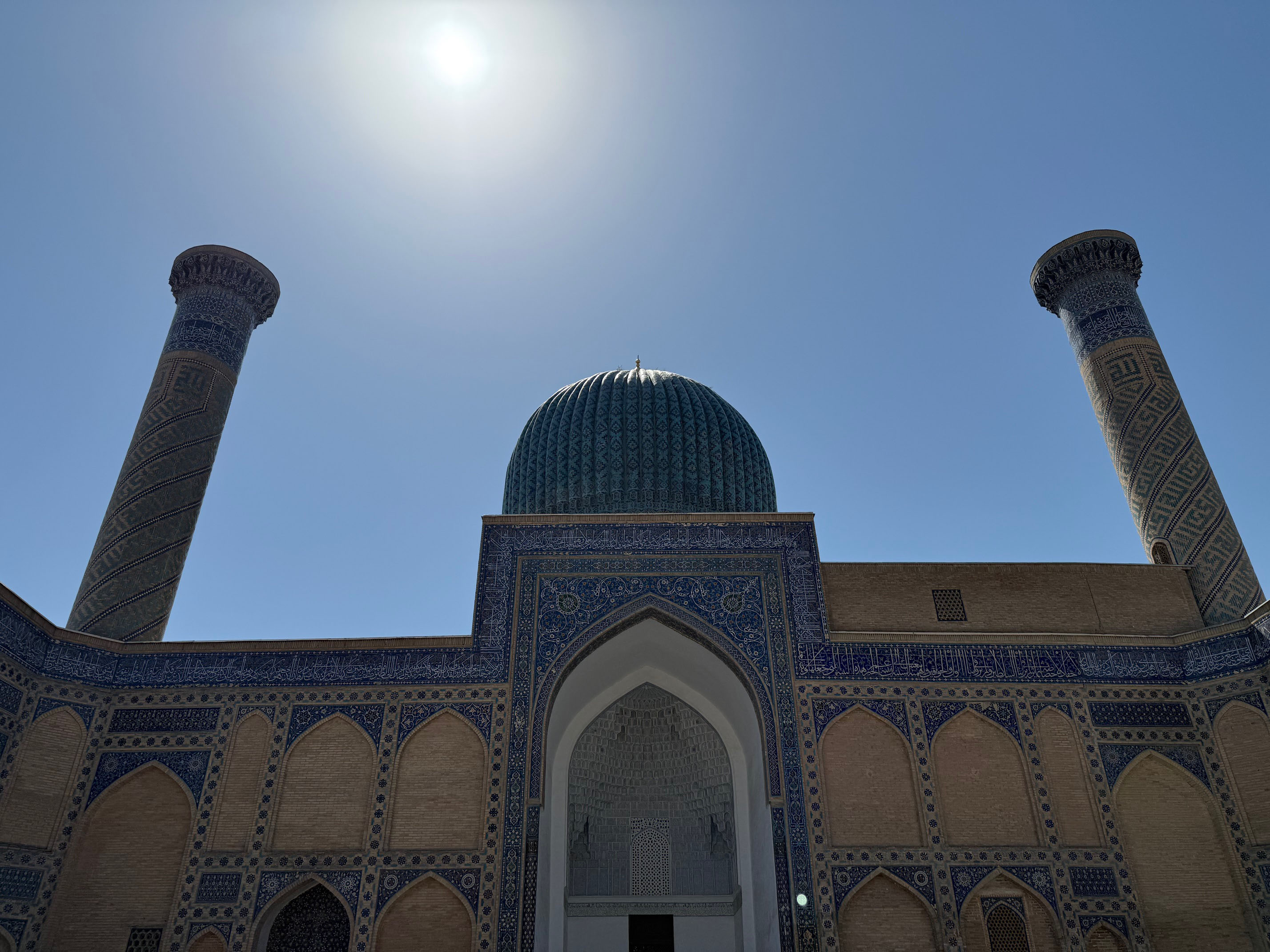 Türkistan ve Timurlular mimarisinin en önemli tarihi, estetik, görkemli yapılarından birisi olan Emir Timur Türbesi, Semerkant’ın tam kalbinde yer almakta. Türbede Emir Timur, oğulları Şahruh ve Miranşah, torunu Muhammed Sultan ve torunu Uluğ Bey ile birlikte akrabalarının mezarları var. Bir aile mezarlığı da olan Türbe, göğe yükselen muhteşem kubbesiyle bir dünya imparatorluğunun kudretini anlatıyor. Türbenin iç mekanı ise, ziyaretçiye insanın fani olduğunu anlatıyor. Türbenin mimarisi, sanatı, renkleri, desenleri tarihsel kudret ve tevazu, ihtişam ve sükûnet, zafer ve ölüm arasındaki diyalektiği fısıldıyor insana.